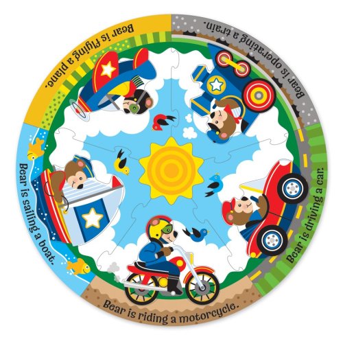 A happy bear travels round and round this colorful 11-piece circular puzzle in five different vehicles 11-piece circular floor puzzle Easy to clean surface Measures 24 Great first puzzle Exceptional Quality and Value Read More..