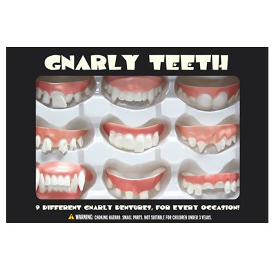 Dental hygienists have nightmares about teeth like these Each soft vinyl set of teeth fits over your real teeth instantly transforming you into a new creepy character Nine different styles You get 9 sets of fake teeth for kids Read More..
