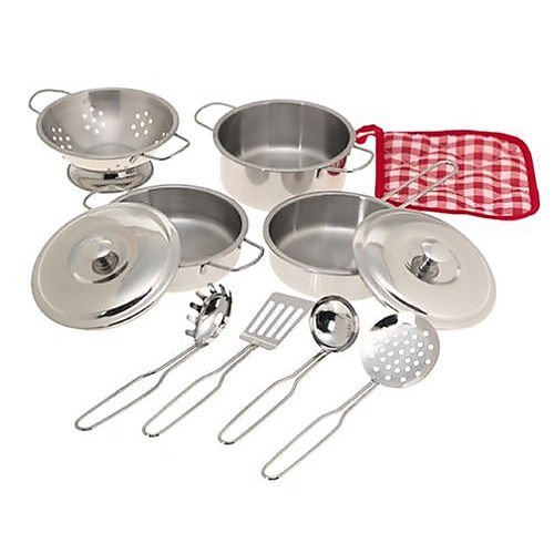 Role play with a very real set of pots pans and utensils made of aluminum Can be washed just like moms and dads Full set of pots and pans for the kitchen Makes kitchen play more real with durable aluminum construction Can be washed in dishwasher or by hand Read More..