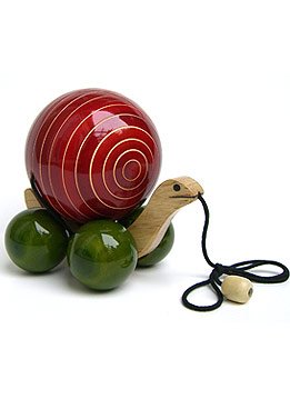 TOMMY TURTLE is handcrafted in wood and colored with natural vegetable dyes Simply pull this unique turtle for adorable rotating shell movement Adorable turtle roller toy All natural vegetable colors Work of art in your childs hands Fair trade product Handmade by artisans in India Read More..